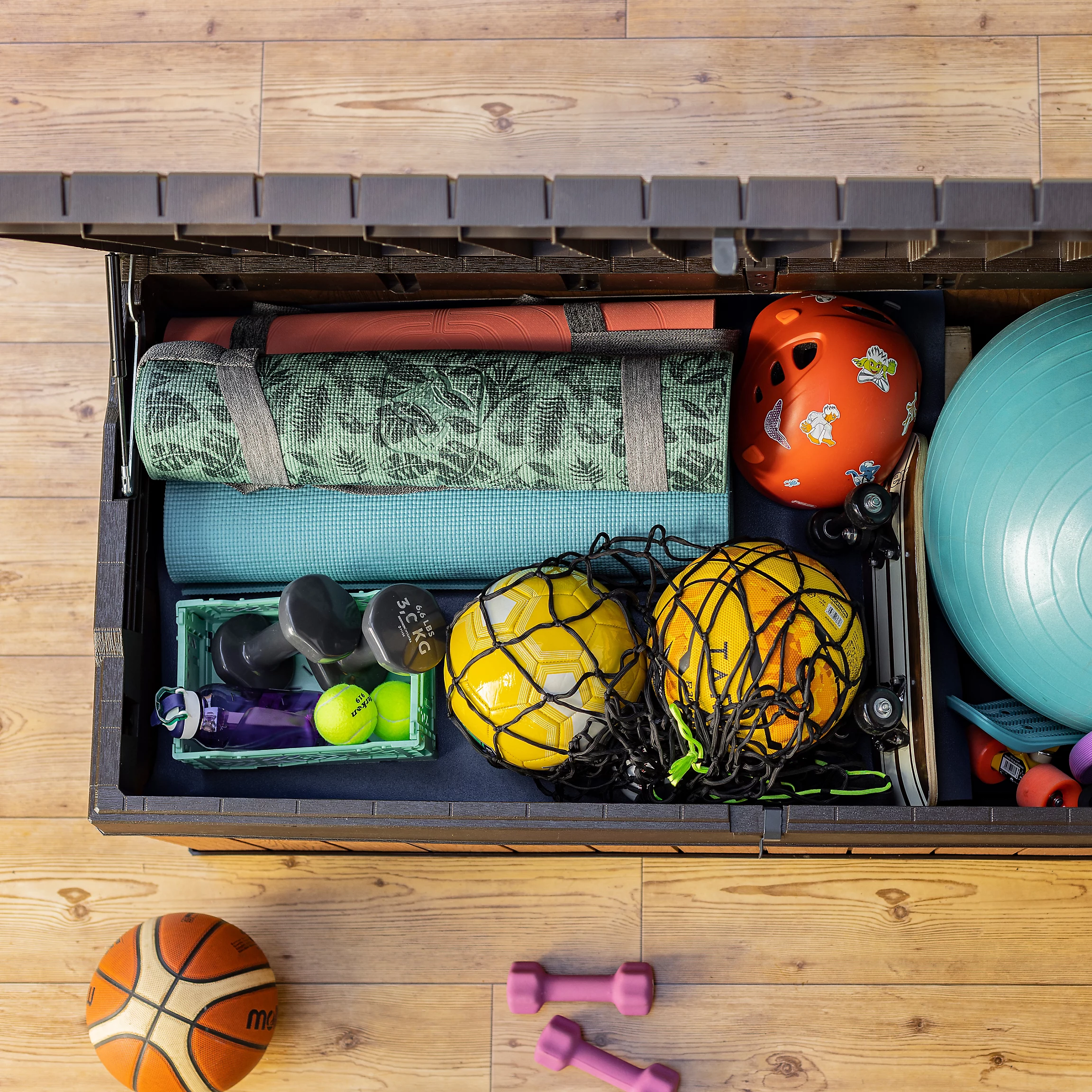 - Ideal outdoor storage box for garden tools and games, furniture cushions and other accessories